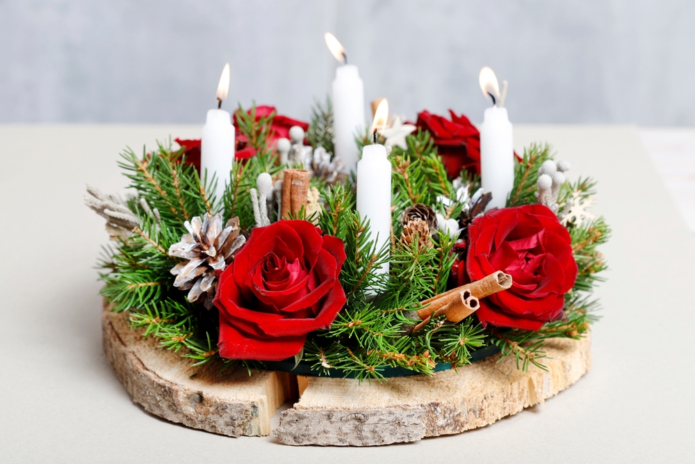 With the addition of your main color and focal accents, the time has come. Choose hardy and long-lasting holiday flowers that stand well in arrangements, i.e., Amaryllis, Roses, or Carnations.